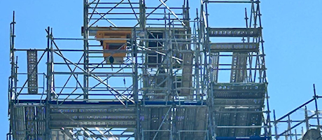 Chargée de mettre en place un accès sécurisé sur l’un de ses chantiers, elle doit alors relever un défi de taille : hisser à plusieurs dizaines de mètres du sol de lourdes pierres destinées à la reconstruction de la tour nord et de la flèche de la Basilique Cathédrale Saint Denis, jusqu’à leur emplacement final, au plus près de la zone de travaux.
