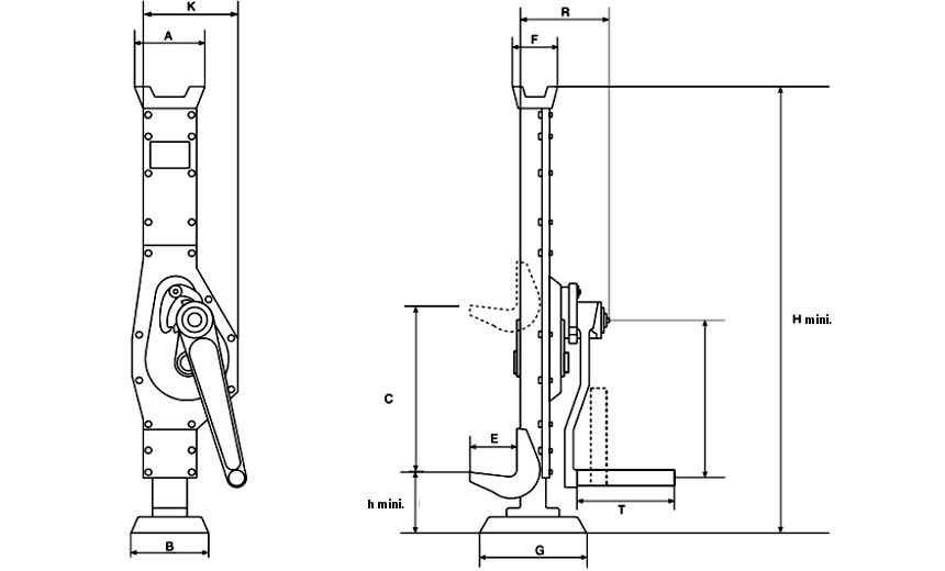 Caractéristiques techniques du Cric à fût montant 729, 5 t