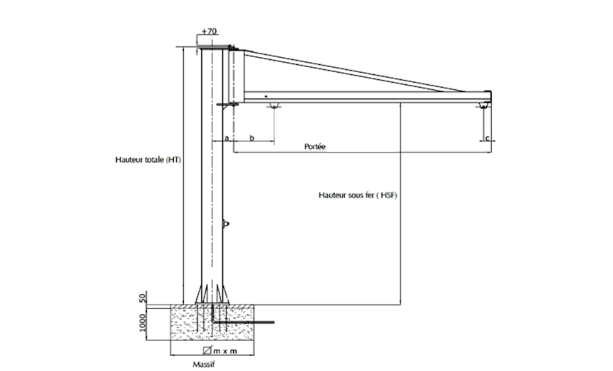 Caractéristiques techniques du Potence sur colonne à tirant supérieur 901, force 1000 kg